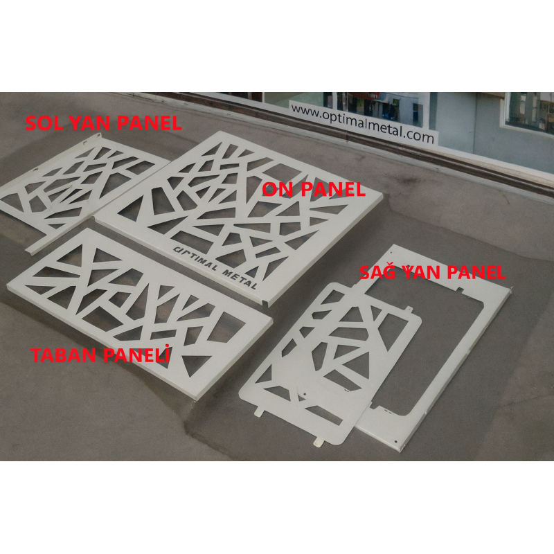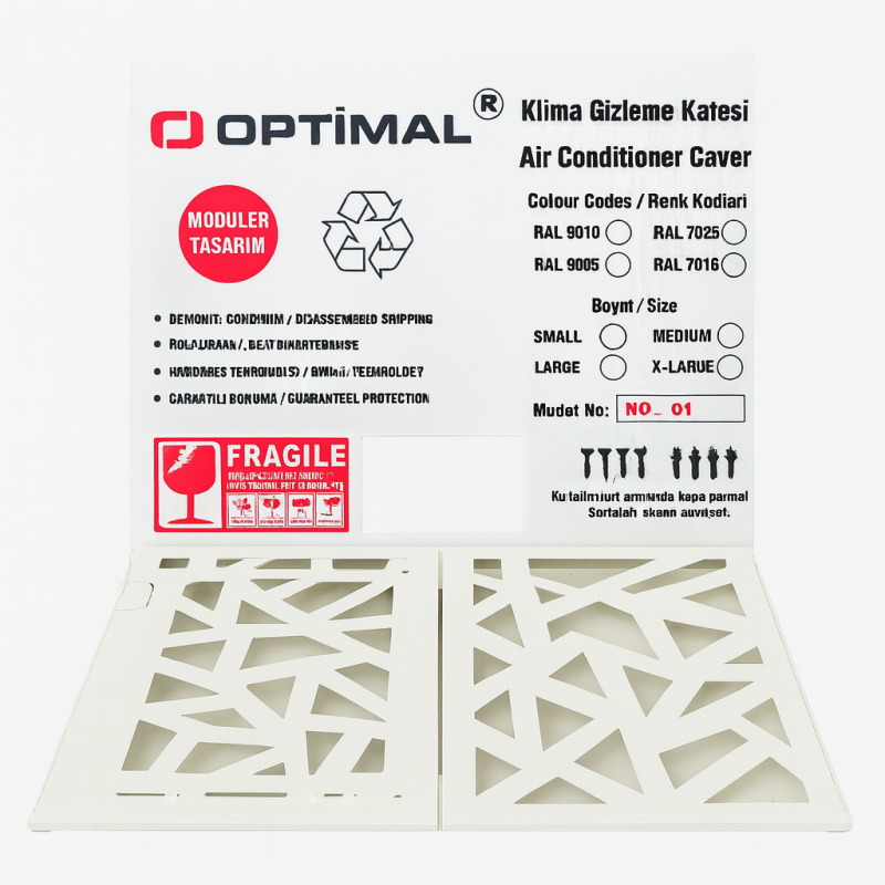 Optimal klima gizleme kafesi, klima dış ünite kompresörlerinizi estetik ve dayanıklı bir şekilde korumak için tasarlanmıştır. 1 mm galvaniz kaplama çelikten üretilmiş olup, CNC lazer kesim teknolojisi ile modern desenler işlenmiştir. Elektrostatik fırın boya sayesinde dış hava koşullarına karşı uzun ömürlü dayanıklılık sağlar.