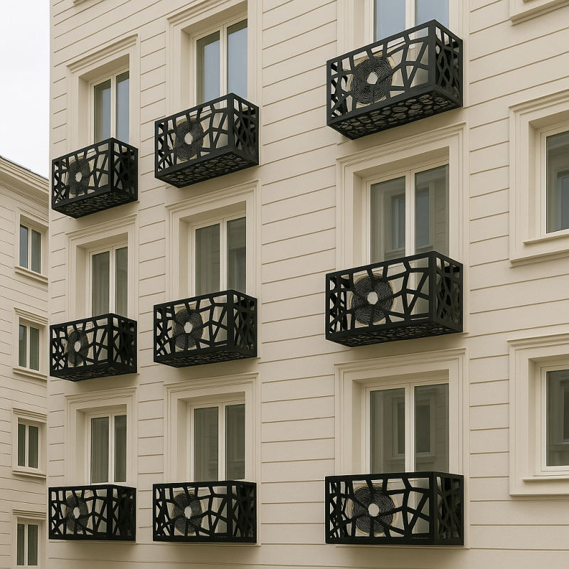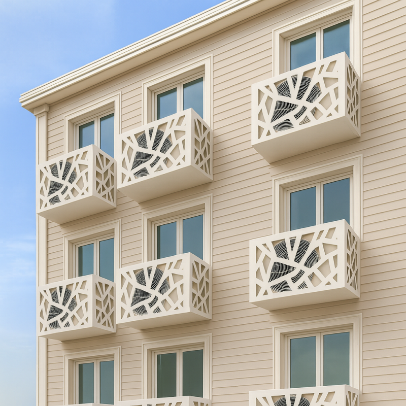 Klima dış kompresör üniteleri için dekoratif ve şık bir çözüm sunar.